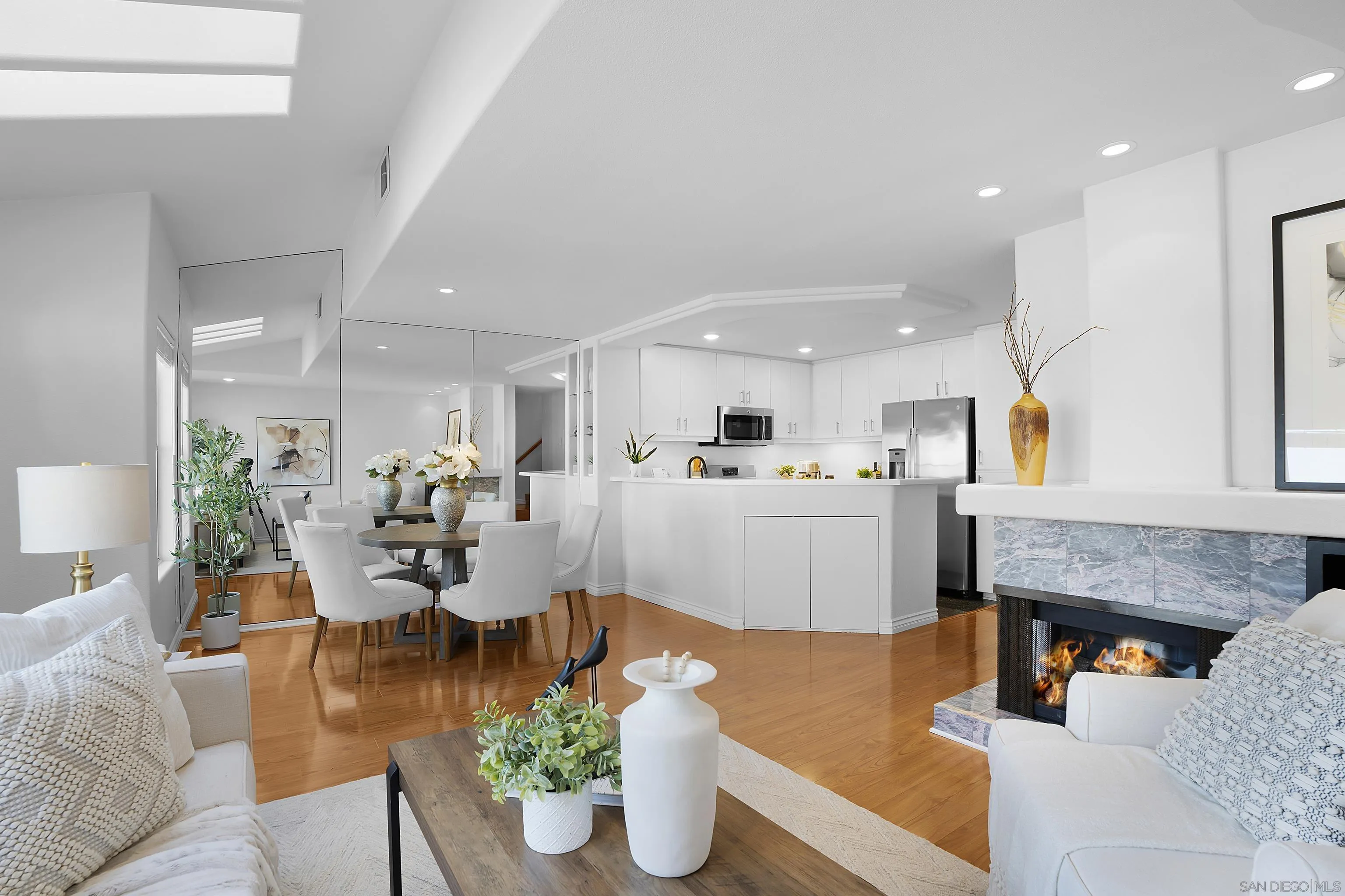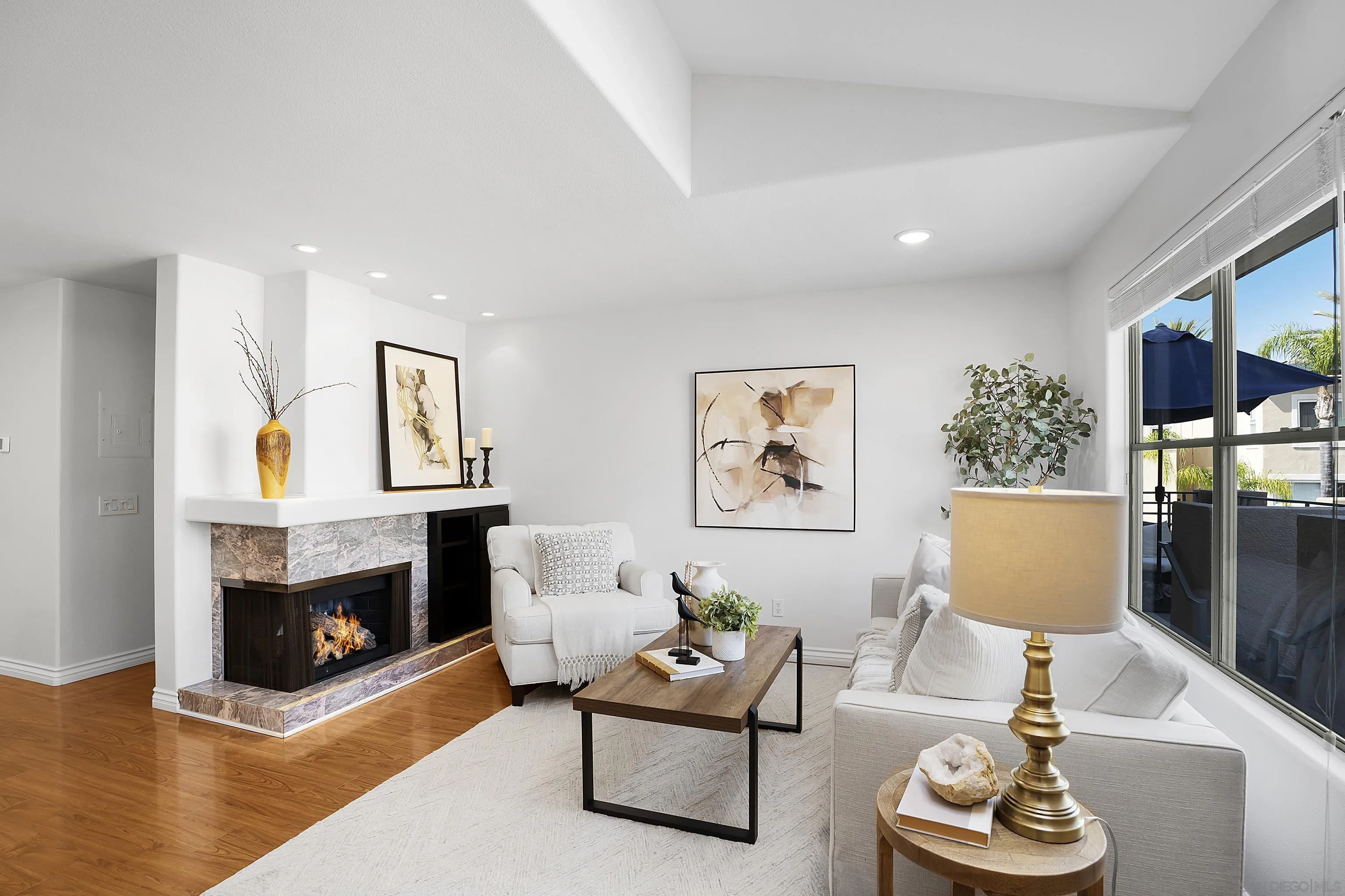 Welcome to this meticulously maintained 2-bedroom, 2.5-bath condo in the highly sought after Elysian community! This two-story home offers a bright, airy interior with an open concept layout designed for modern living. Step inside to gleaming hardwood floors, fresh paint, and abundant natural light. The spacious living and dining areas flow seamlessly to a serene patio perfect for relaxing or entertaining. The updated kitchen features stainless steel appliances, ample counter space, and a large pantry. A convenient half bath is located on the main floor for guests. Upstairs, the primary suite boasts vaulted ceilings, dual closets, and a beautifully tiled shower. The second bedroom includes a large mirrored closet, en-suite bathroom, and French doors that open to unobstructed views and year-round breezes. Additional features include a two-car tandem garage, full-size laundry near the bedrooms, central heating and air conditioning, a cozy gas fireplace, and plenty of storage throughout. Enjoy resort-style amenities with two pools, a spa, and a fully equipped gym. Located in the heart of Carmel Valley, minutes from The Bay Club, Del Mar Highlands, One Paseo, parks, and beaches. Walk to top-rated schools like Carmel Creek Elementary, Carmel Valley Middle School, and Torrey Pines High School, with easy freeway access. Homes in the Elysian community are rarely available so don't miss this rare opportunity to own a turnkey residence in one of Carmel Valley's most desirable neighborhoods. Submit your offer today!