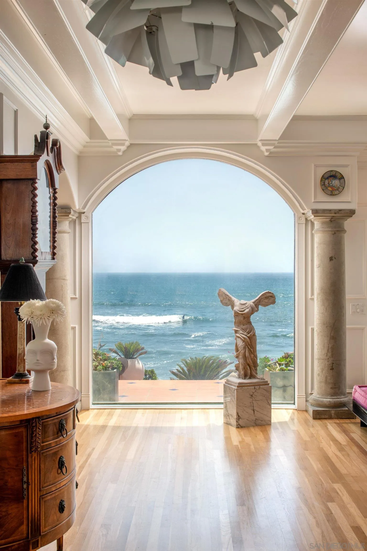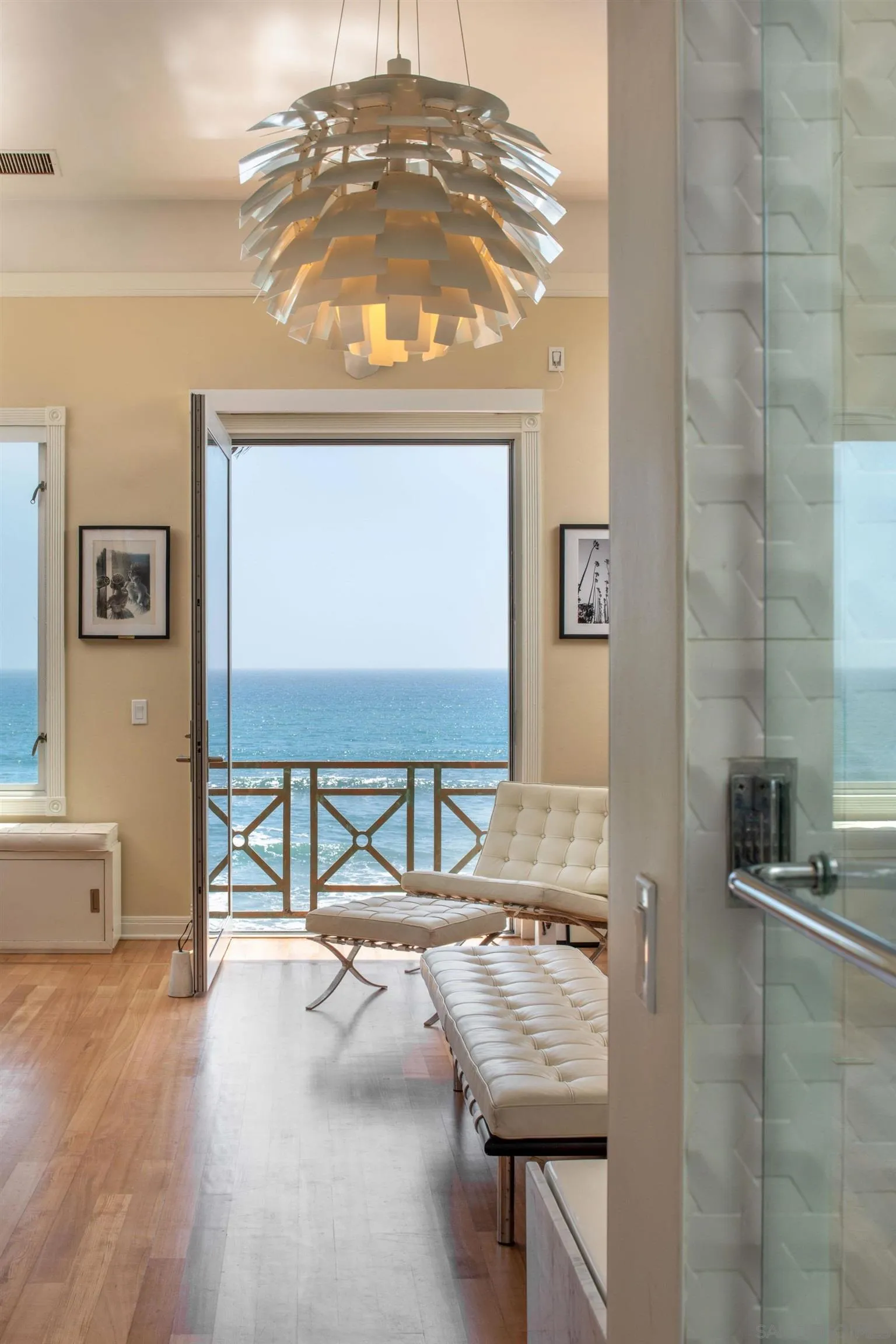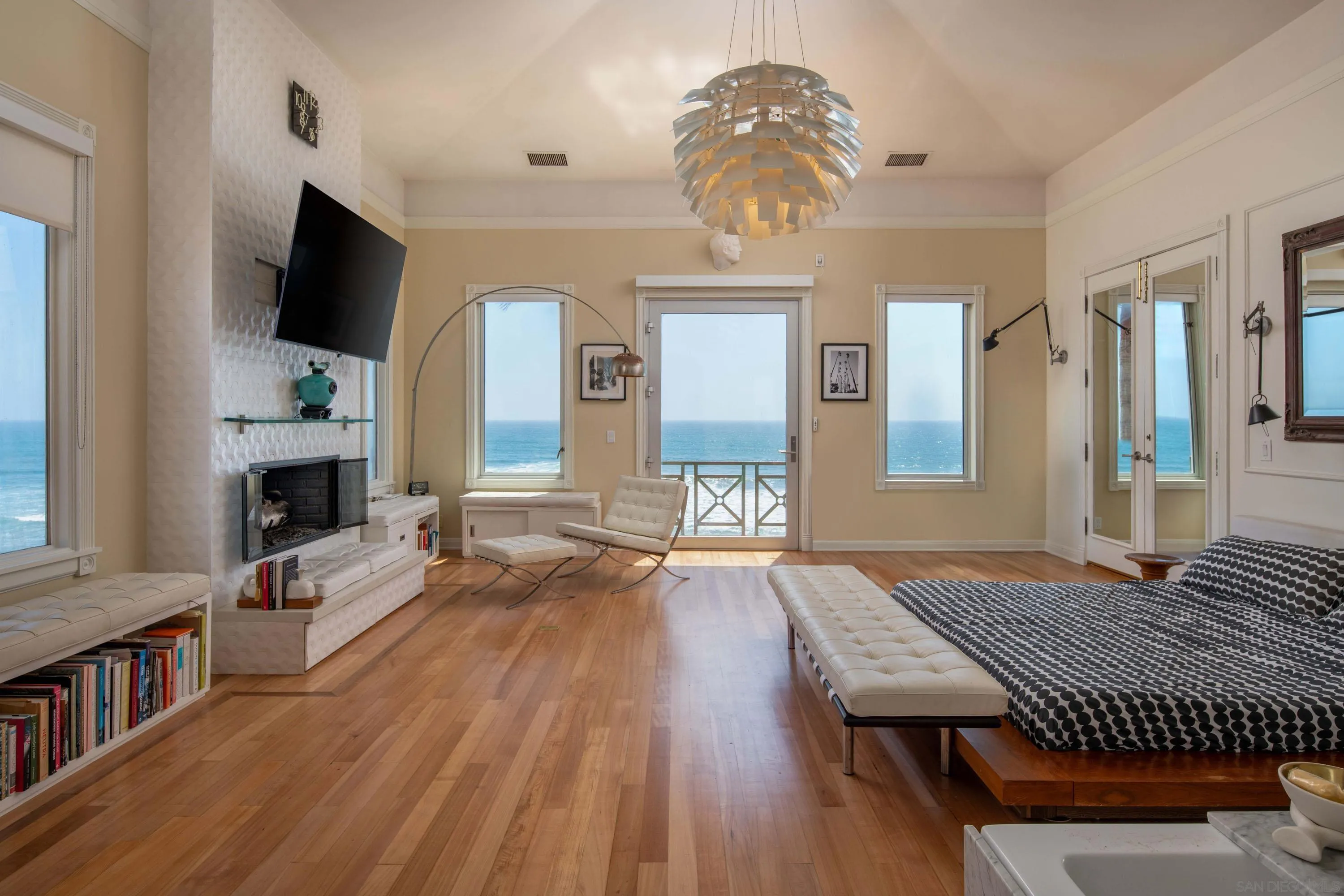 Perched on solid bedrock along one of Southern California's most exclusive stretches of coastline, 5143 Shore Drive presents a truly irreplaceable offering; rare deeded ownership of your own private beachfront, complete with direct steps leading to the sand below. Ideally positioned at the center of a private-access beach and elevated just enough along the bluff to ensure privacy and protection, this home delivers an extraordinary connection to the Pacific, where the shoreline becomes a seamless extension of your backyard. Here, you can walk directly from your home to the sand, explore tidepools, surf Carlsbad's renowned surf break, or simply stand at the water's edge as waves lap at your feet--all within the privacy of a beach you own to the median high tide, one of only a handful of such opportunities in all of California. Known as The Villa at Terramar, this iconic coastal residence blends modern Italian design with timeless coastal elegance, offering a flexible floor plan that effortlessly accommodates intimate living and grand-scale entertaining. Every element of the home is oriented to maximize the sensory experience of the ocean--where sight, sound, and proximity converge to create a daily connection to the Pacific that is rare and deeply compelling. Set within Carlsbad's sought-after Terramar enclave--a coastal destination known for its charming village, Michelin-star dining, scenic boardwalk, and private airport minutes away--this property offers not only a home, but a lifestyle defined by exclusivity, accessibility, and the enduring romance of true oceanfront living.