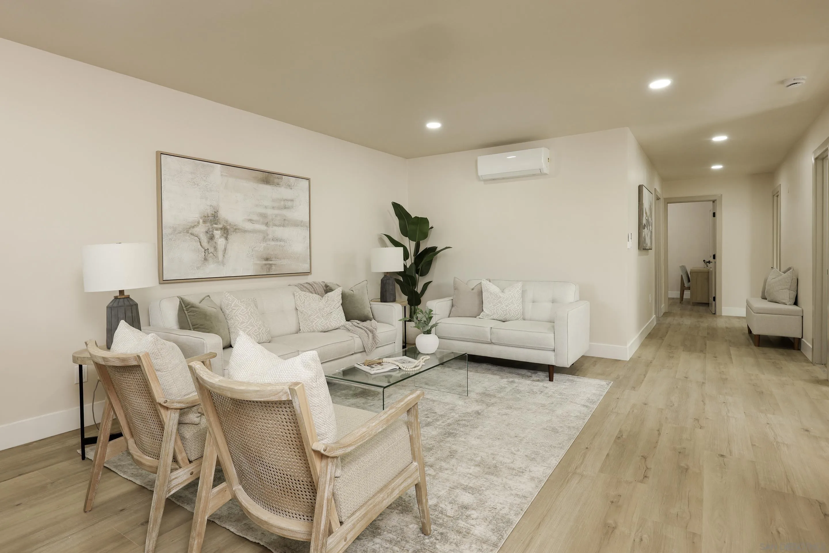 Welcome to this beautifully refreshed Allied Gardens home featuring 3 bedrooms, 2 bathrooms, and 1,488 square feet of inviting living space. The flexible layout offers an optional fourth bedroom or private home office, perfect for remote work, guests, or a creative studio. Step into the enclosed courtyard where a serene pondless waterfall creates a peaceful, resort-like setting ideal for relaxing or entertaining. Located in a desirable neighborhood close to parks, shopping, dining, and convenient freeway access, this home blends comfort, style, and versatility.