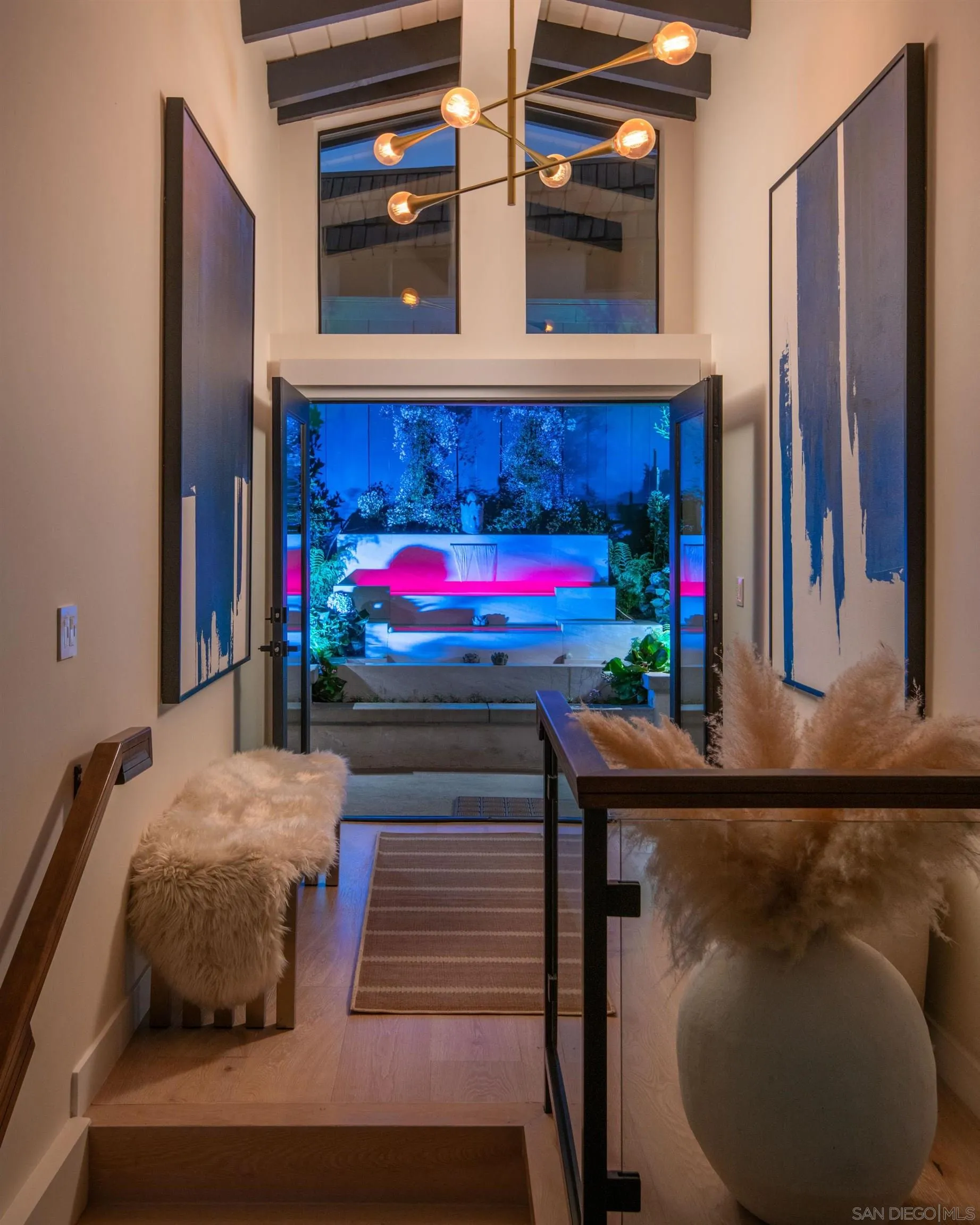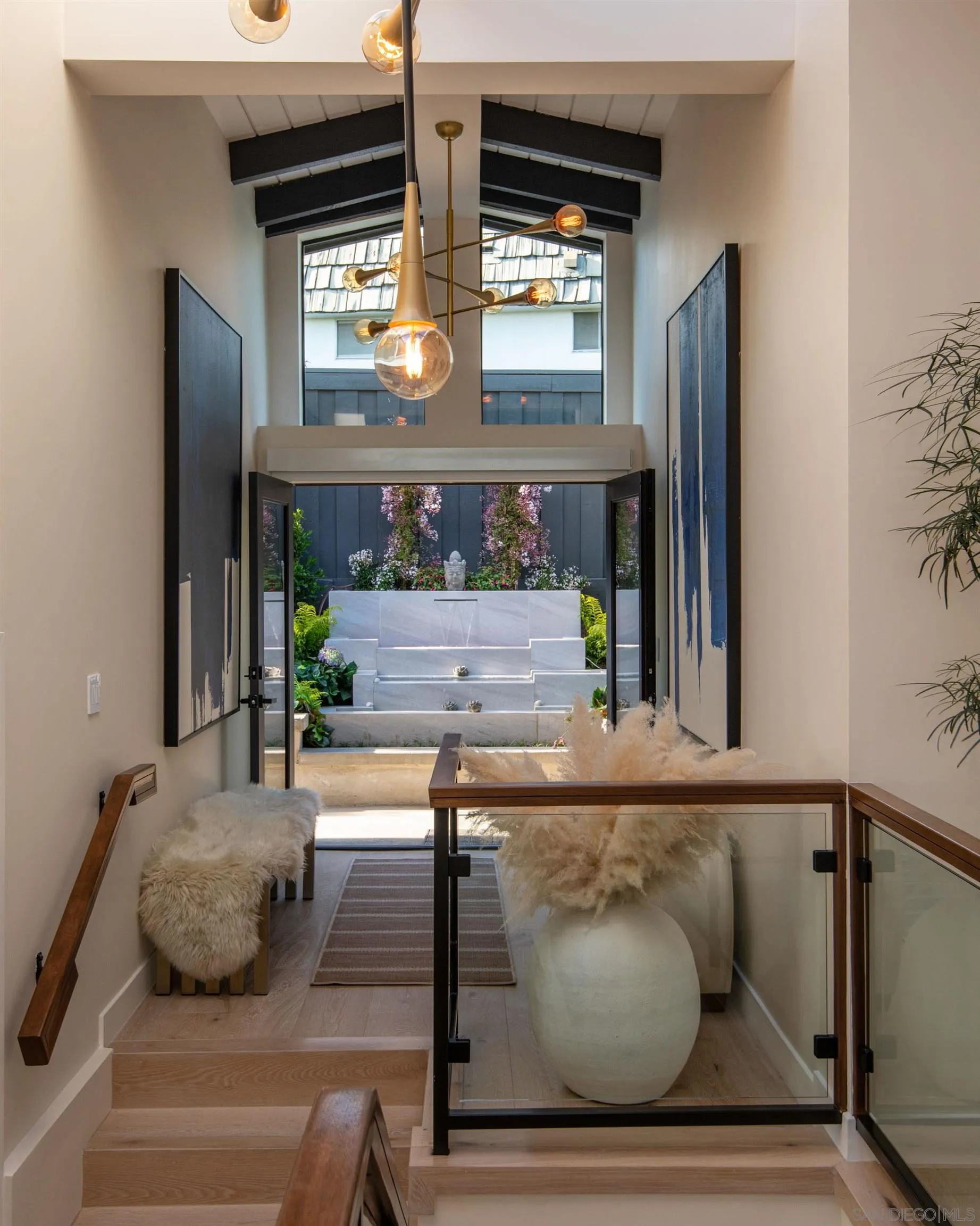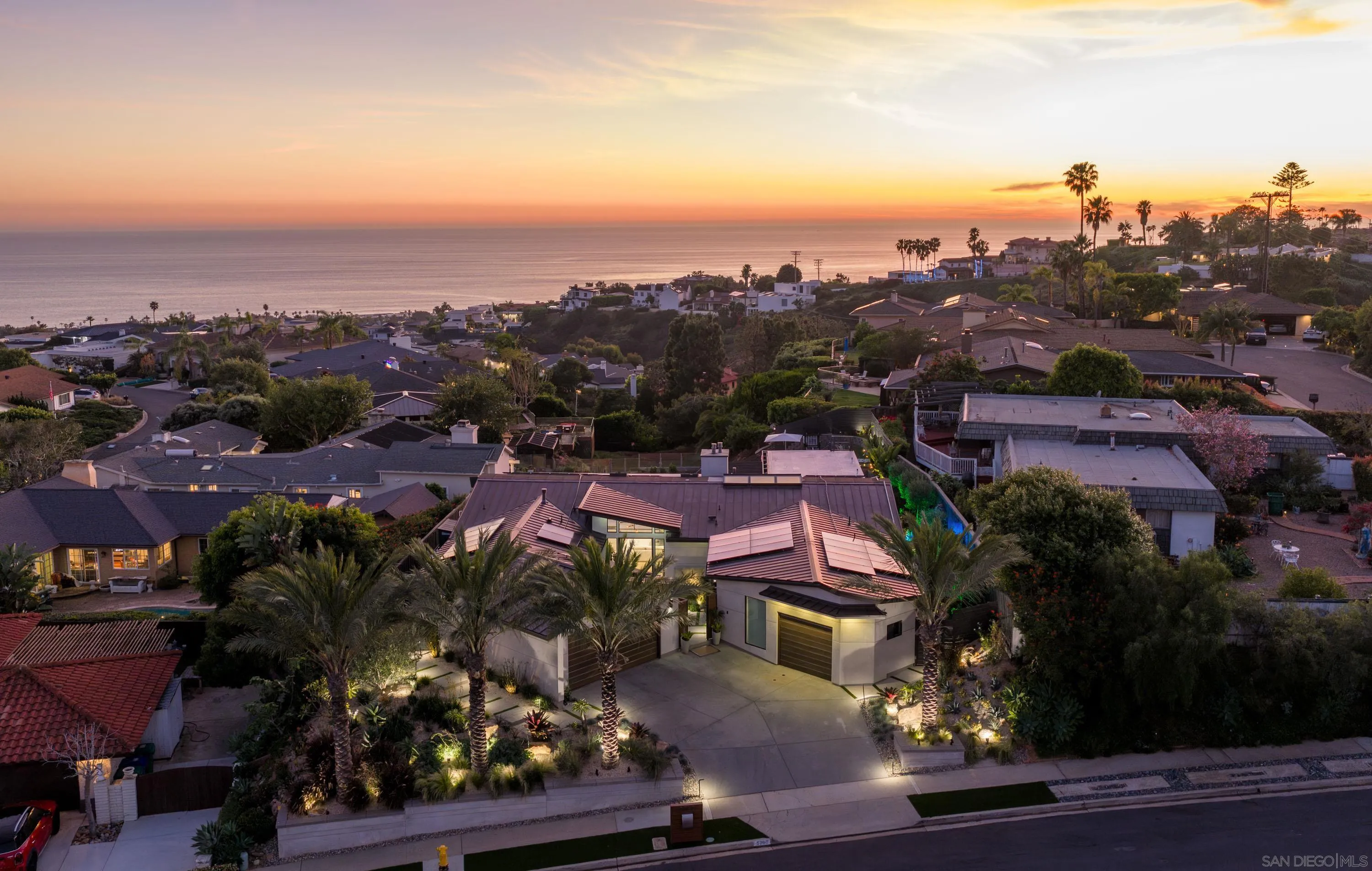 Welcome to Rutgers Road, a beautifully constructed ocean-view residence in La Jolla where no detail has been overlooked, with $1.2M+ in professionally designed upgrades. Showcasing exceptional landscape architecture, the outdoor spaces feature an ocean-view pool and spa with a cascading waterfall, outdoor movie theatre, and multiple thoughtfully designed living areas and amenities. Perched in the iconic hills overlooking the Pacific, the home spans three levels yet lives primarily like a single story, with the main floor offering the kitchen, living room, view deck, primary suite, two additional bedrooms, additional bedroom for an optional office, laundry, pantry, garage access, and a private housekeeper's room--an incredibly rare layout for a home of this scale. The primary suite is a true retreat, featuring a spa-inspired marble bathroom with heated floors and a spacious walk-in closet. Extensively upgraded throughout, the home blends refined interiors with resort-style outdoor living. The backyard has been transformed into a private oasis with a new pool and spa, elevated terrace with glass railings, Trex decking, outdoor kitchen and BBQ, fire pit, motorized pergola with heaters, infrared sauna, and cold plunge, all enhanced by professional landscaping, drainage, and lighting. The front yard offers striking curb appeal with curated landscaping, including King Palms, olive trees, and a statement fountain. Additional upgrades include exterior and structural improvements, custom railings, upgraded electrical and AV systems, solar, security, and custom window treatments.