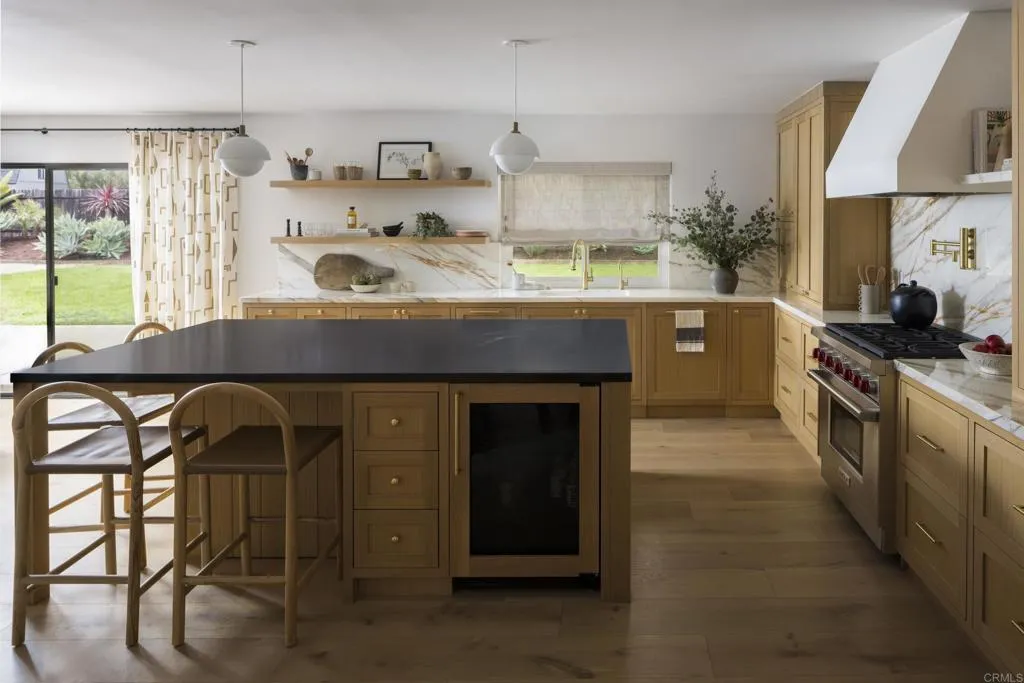 No expense was spared in this beautiful Olivenhain rancher with a massive yard. This home is designer from top to bottom & has been meticulously curated so you can skip the years of costly & messy renovations. This dream home is full of warmth and character & includes nearly 3,000 sq. ft. of high-end luxury finishes, typically found only in Rancho Santa Fe estates, making this home truly one of a kind. The kitchen is a true designer masterpiece & was crafted for both beauty and performance. Durable soapstone countertops handle everyday living with ease, while stunning Italian marble makes a bold statement of luxury. Top-of-the-line Wolf and Sub-Zero appliances, a discreet appliance garage, and a whole-house water filtration system elevate both style and functionality. The open layout flows effortlessly across white oak floors, smooth plaster walls, designer lighting, and custom window treatments, creating a warm yet sophisticated atmosphere. Bathrooms feature authentic, hand-crafted Zellige tile (never mass-produced imitations) bringing artisan detail to every space. With a custom bar, mudroom, laundry room, and built-ins throughout, every corner of this home has been meticulously designed for beauty, practicality, and modern living. Each bedroom is a blend of style and function with custom closets, but the primary suite is in a league of its own. A private sanctuary designed for ultimate indulgence. Step outside to your very own wellness courtyard, where a spa, dry sauna, cold plunge, and tranquil stone fountain create a five-star resort experience right at home. Step outs