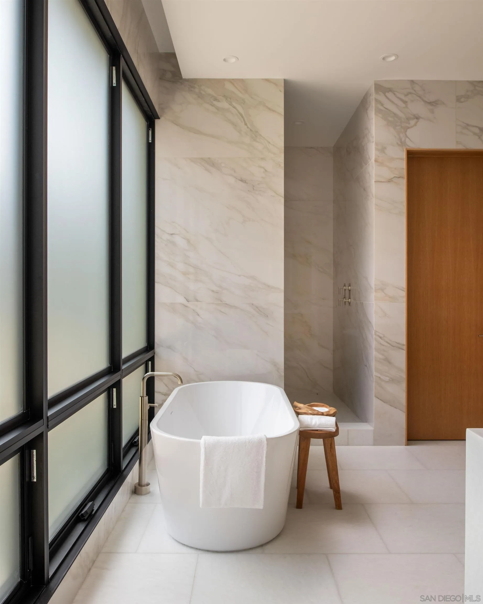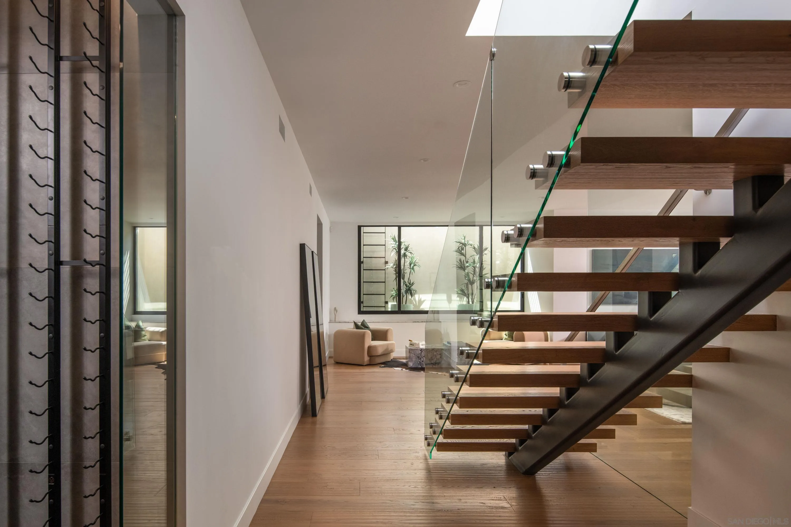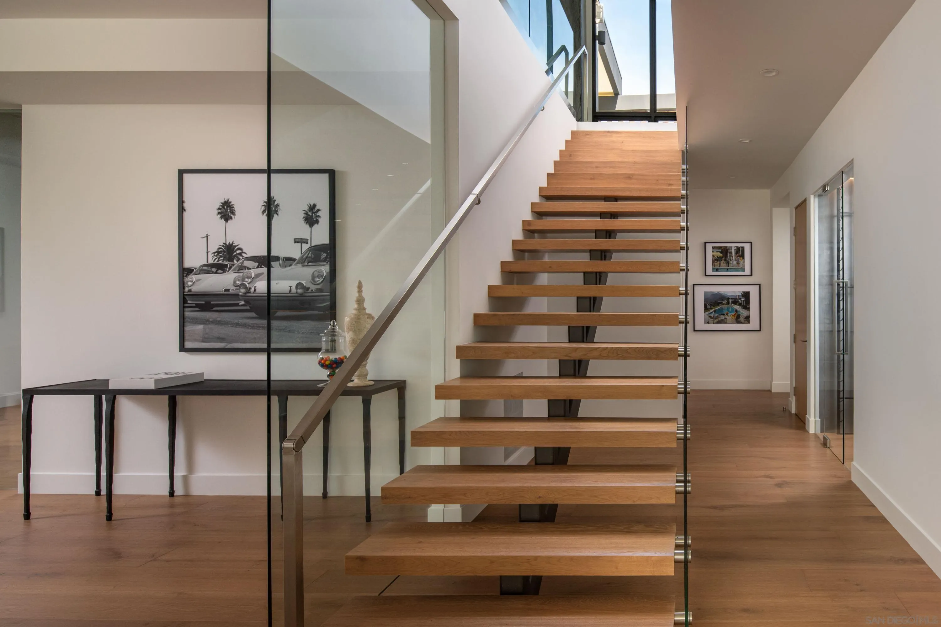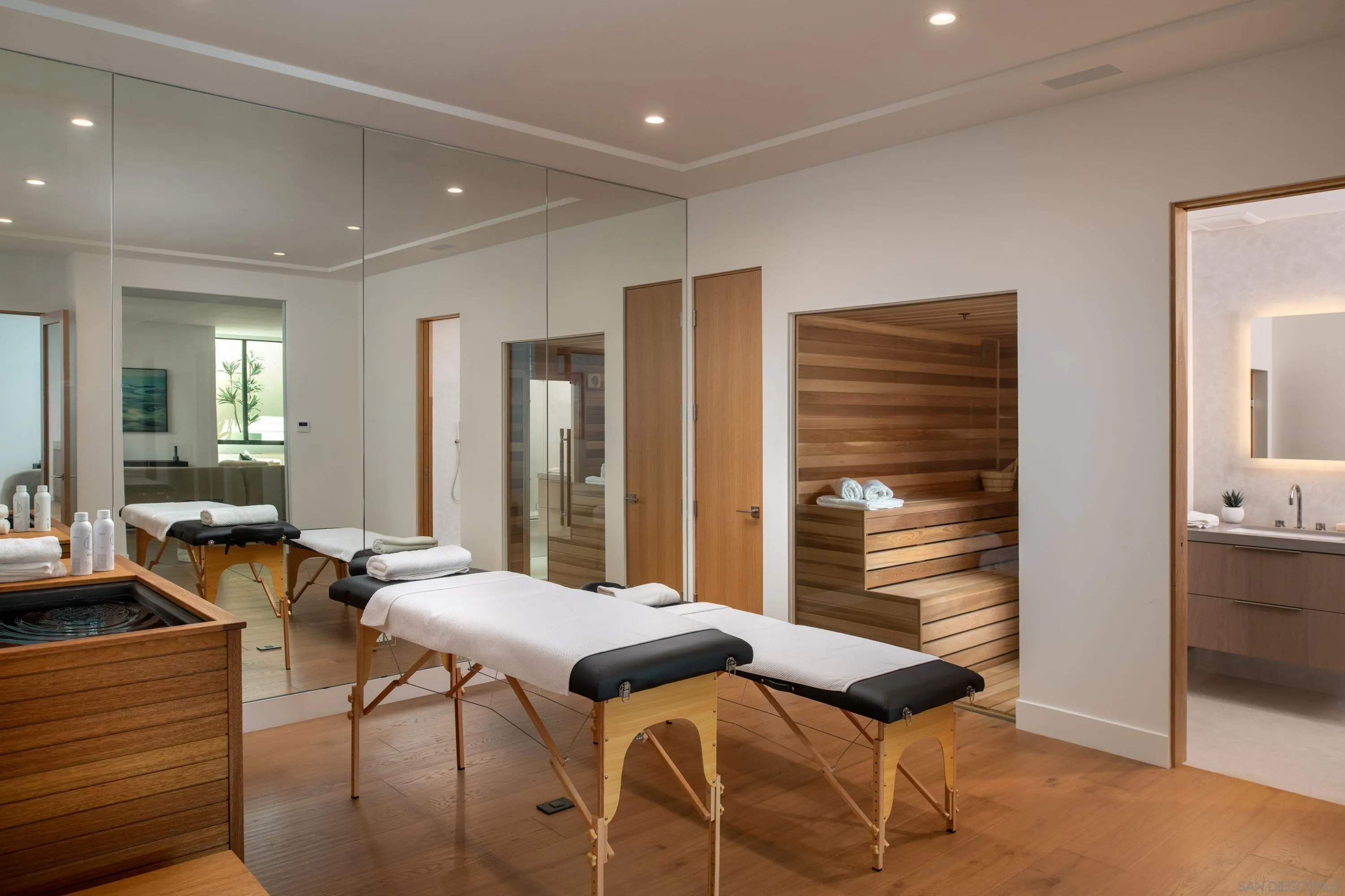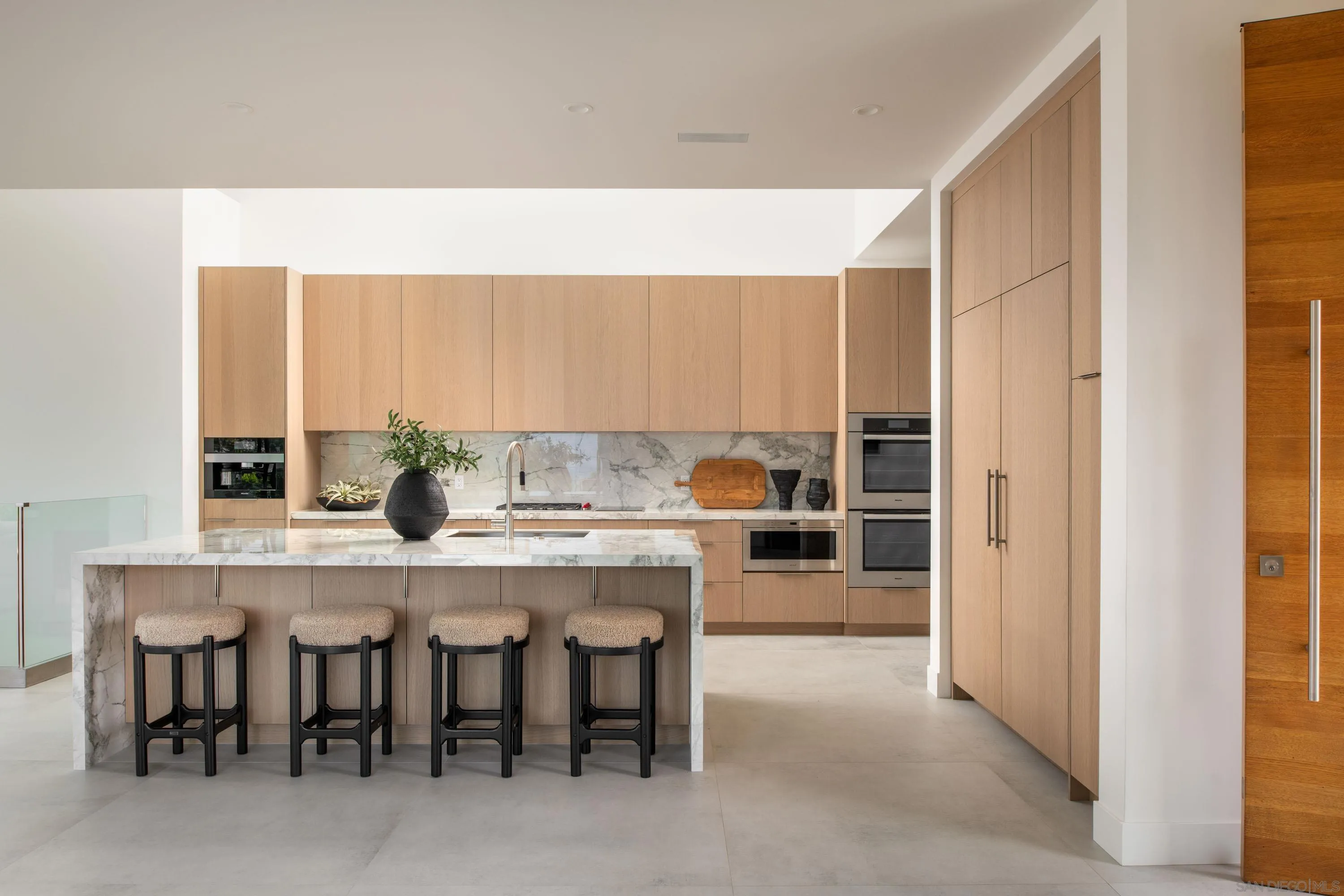 Seller will entertain offers between $9,700,000 - $10,700,000. Envisioned by one of Del Mar's most celebrated architectural visionaries and designed in collaboration with a leading California luxury home builder, this incredible contemporary home in Olde Del Mar features 4 bedrooms, 4 full baths, and 2 half baths, seamlessly blending modern elegance with the natural beauty of the Pacific coast. The home's westerly orientation captures sweeping ocean vistas extending to La Jolla, while maintaining a level of privacy rarely found in this coveted area. Stepping through the 8-foot-wide entry pivot door, you'll be greeted by soaring 10-15 foot ceilings, clerestory windows, and disappearing nano doors that dissolve the boundaries between indoor and outdoor spaces. Flooded with natural light, this residence is the ultimate embodiment of the elevated Del Mar beach lifestyle. Crafted with the finest materials, the thoughtful design incorporates artistic angles balanced by organic wood and stone elements, creating a serene coastal sanctuary. The expansive living spaces flow seamlessly to the outdoors, where a pool with spa, firepit, and multiple lounges await for enjoying sunsets over the ocean. Exceptional features include a state-of-the-art wellness retreat, complete with a gym, sauna, cold plunge, shower, and provisions for a juice bar. The home also boasts an executive office, a game room lounge with space for a home theater, an entertainer's bar, and temperature-controlled wine storage.