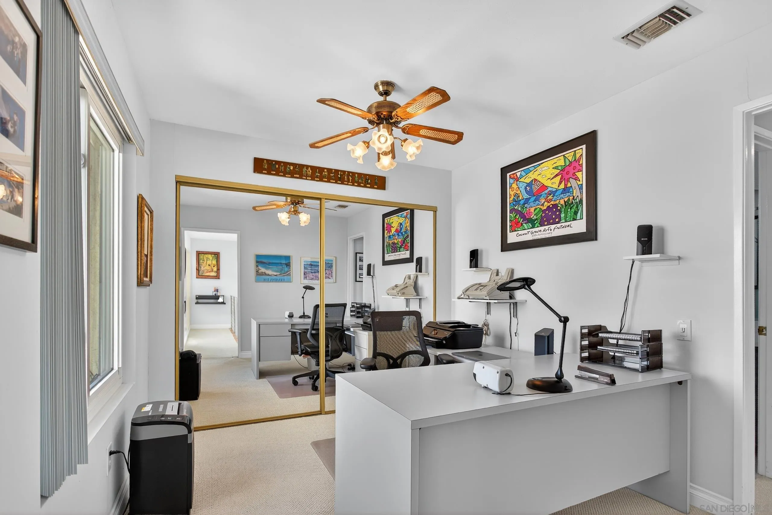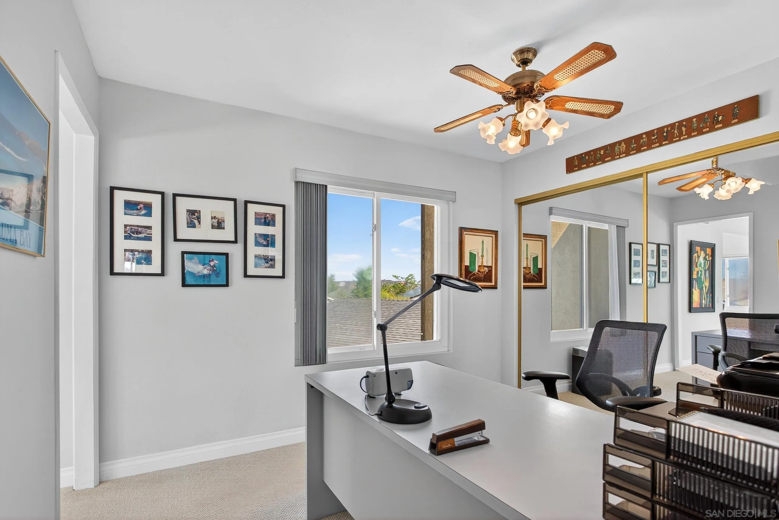 Elegant Del Cerro Residence nestled at the end of a cul-de-sac, this meticulously maintained 4-bedroom, 3-bath home with a spacious loft showcases sweeping views of Mount Cowles. This sun soaked kitchen offers tons of cabinet and counter space for the chef of the house. Designed with comfort and efficiency in mind, the open floor plan is complemented by fully paid solar, ensuring year-round energy savings without compromising modern convenience. The outdoor living spaces are equally impressive--an entertainer's dream featuring a turf lawn, custom paver design, gas fire pit, putting green, and a covered patio lounge for seamless indoor-outdoor living. A versatile side yard provides ample space for a boat, small RV, or additional storage. Sleek 2 car garage has epoxy floors and more storage built-in.With top-rated schools and a highly sought-after community, this residence offers a refined lifestyle in one of Del Cerro's most desirable locations. Move-in ready and thoughtfully appointed, it is truly a rare offering.